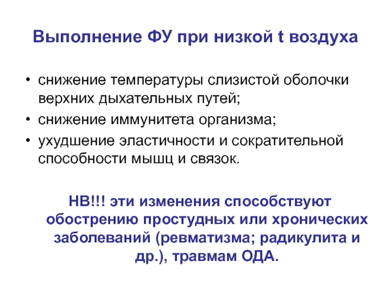 Слайд 16Выполнение ФУ при высокой t воздуха