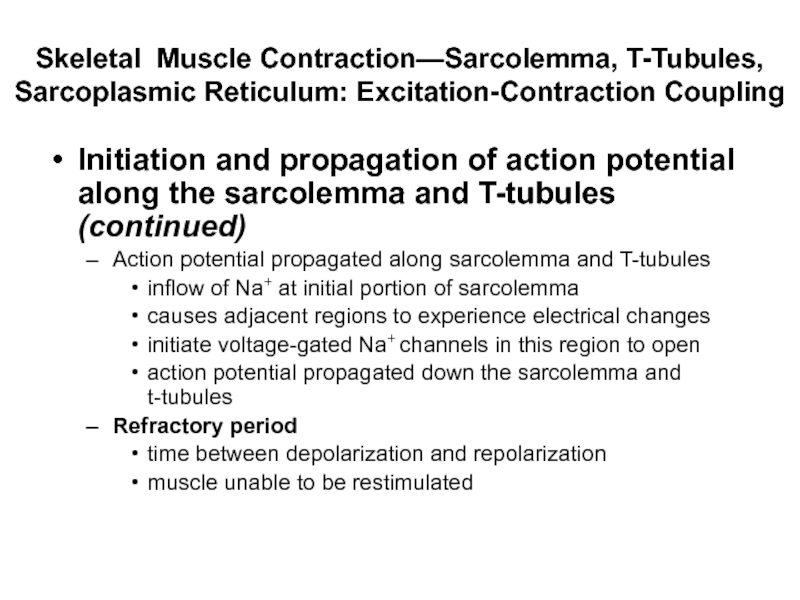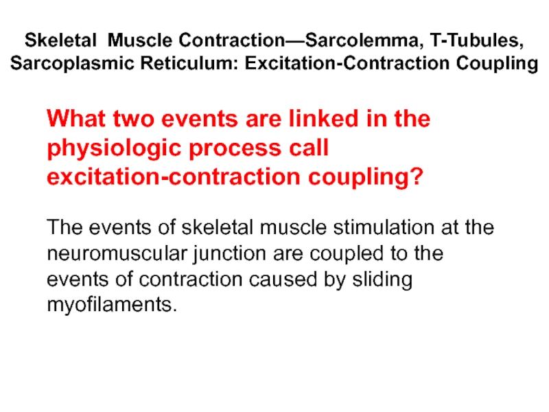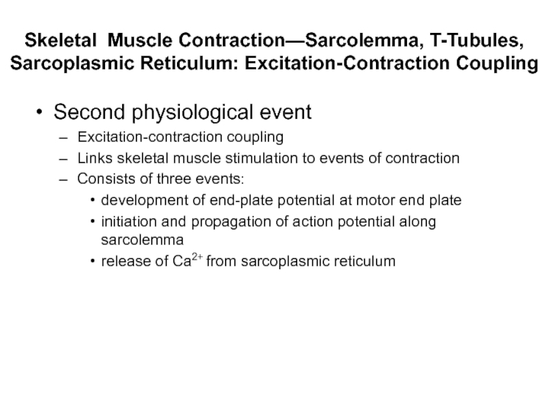 Слайд 88Skeletal Muscle Contraction—Sarcolemma, T-Tubules, Sarcoplasmic Reticulum: Excitation-Contraction Coupling