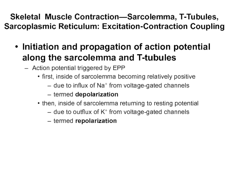 Слайд 87Skeletal Muscle Contraction—Sarcolemma, T-Tubules, Sarcoplasmic Reticulum: Excitation-Contraction Coupling
