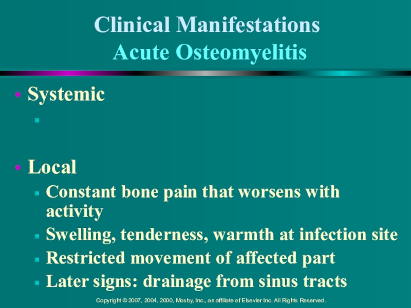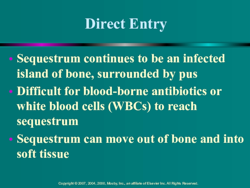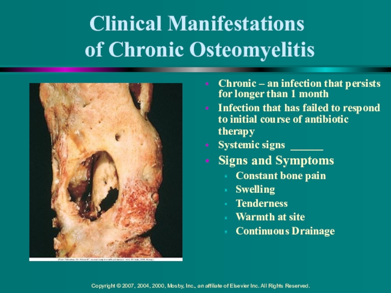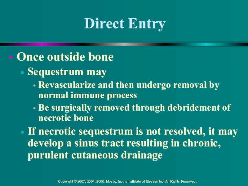 If necrotic sequestrum is not resolved, it may develop a sinus tract resulting in chronic, purulent cutaneous drainage