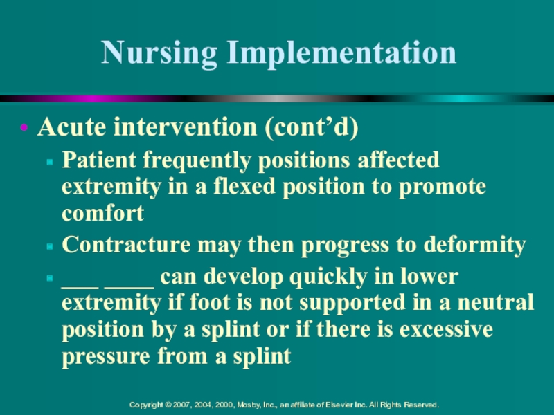 ____ can develop quickly in lower extremity if foot is not supported in a neutral position by a splint or if there is excessive pressure from a splint