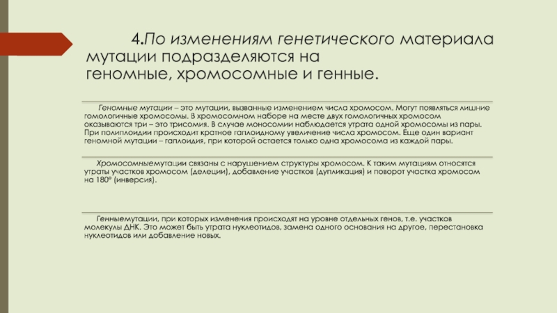 Слайд 10 4.По изменениям генетического материала мутации подразделяются