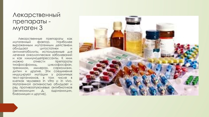 Лекарственные препараты как мутагенный фактор. Наиболее