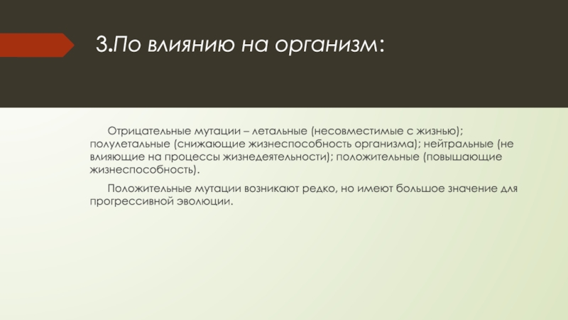 (несовместимые с жизнью); полулетальные (снижающие жизнеспособность организма); нейтральные (не влияющие на