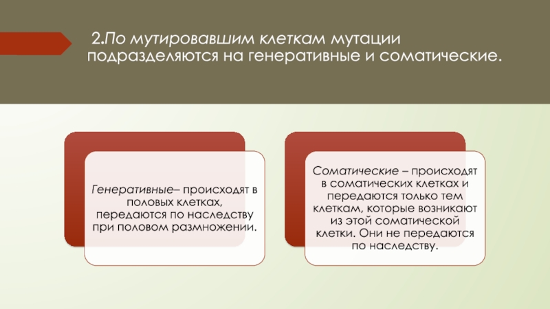 Слайд 8 2.По мутировавшим клеткам мутации подразделяются на генеративные и соматические.