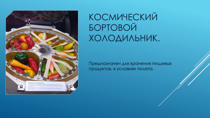 Предназначен для хранения пищевых продуктов, в условиях полета.