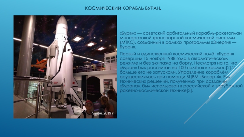 «Бура́н» — советский орбитальный корабль-ракетоплан многоразовой транспортной космической
