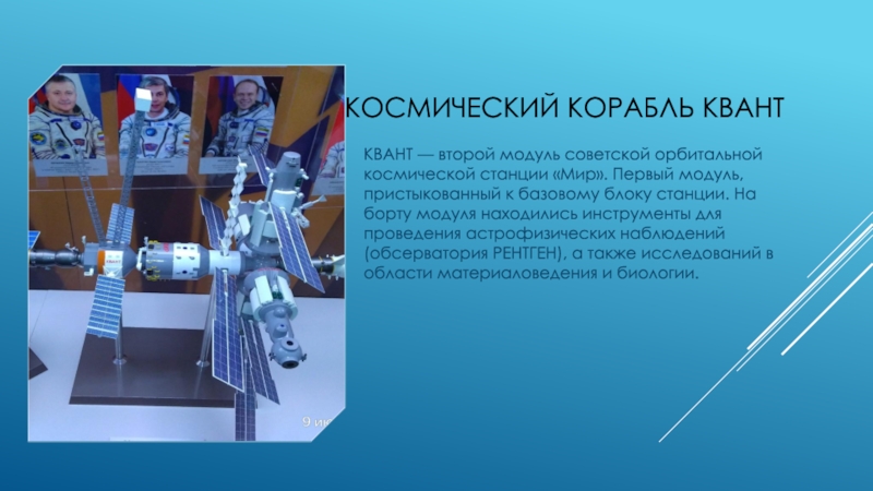 Слайд 9КОСМИЧЕСКИЙ КОРАБЛЬ КВАНТ