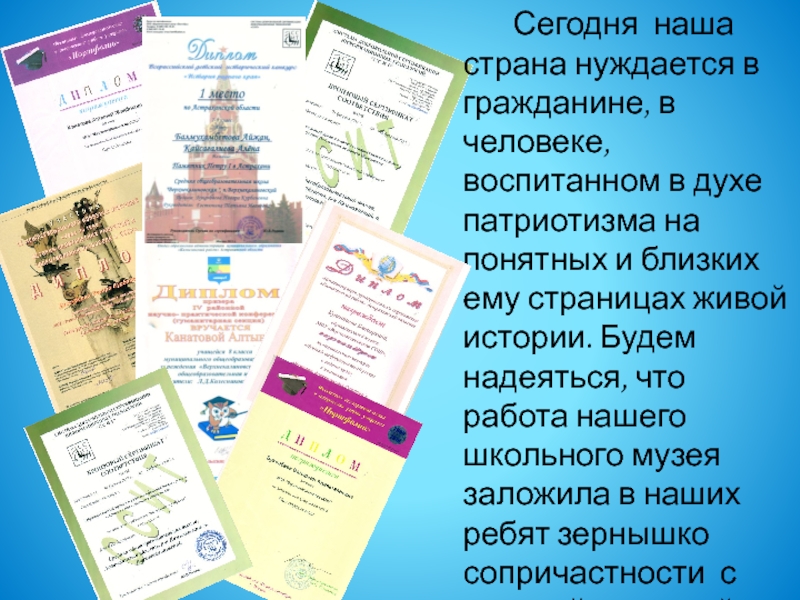 Будем надеяться, что работа нашего школьного музея заложила в наших ребят зернышко сопричастности с великой историей Российского государства.