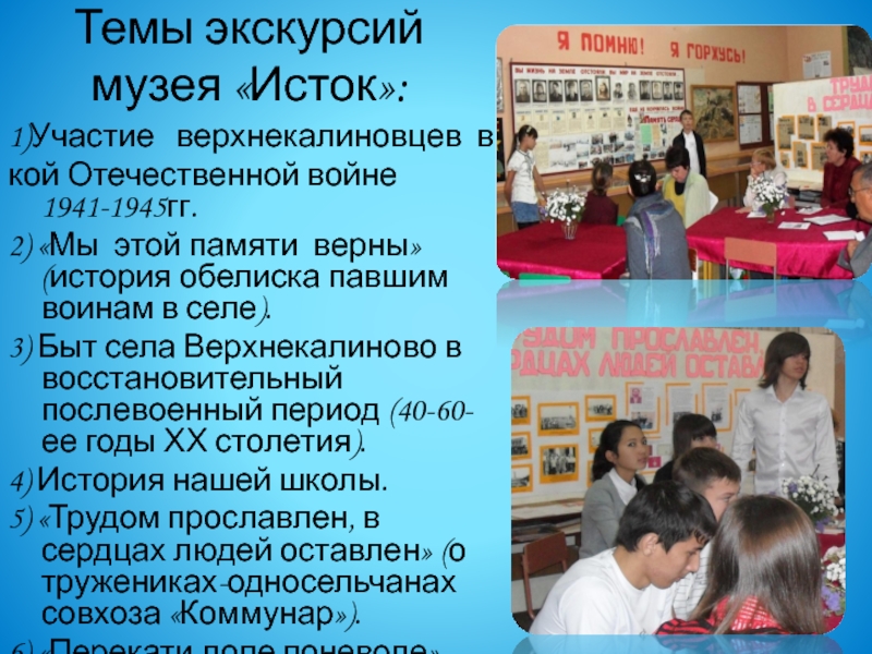 5) «Трудом прославлен, в сердцах людей оставлен» (о тружениках-односельчанах совхоза «Коммунар»).