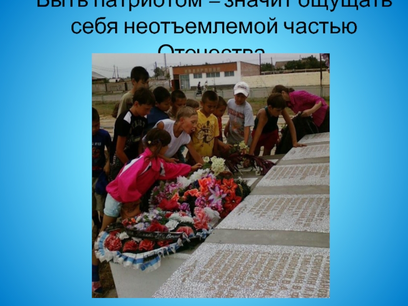 Слайд 2Быть патриотом – значит ощущать себя неотъемлемой частью Отечества.