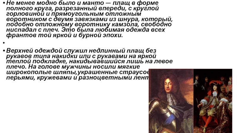 Слайд 8Не менее модно было и манто — плащ в форме