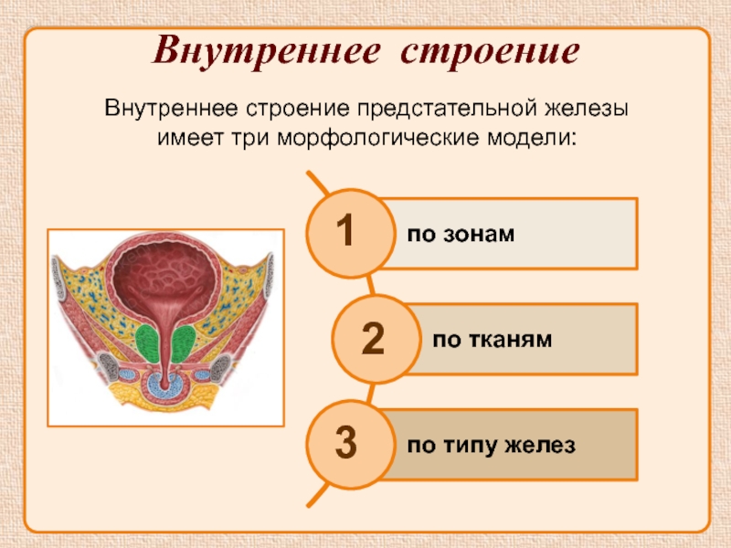 Слайд 93На поперечном срезе предстательной железы представлены простатические железки: