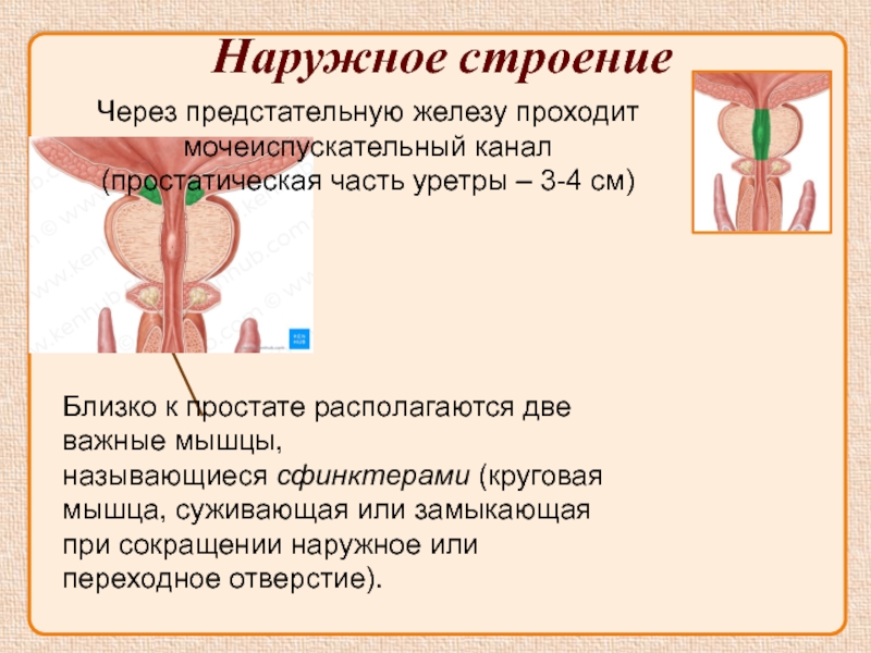 Внутри губчатого тела проходит мочеиспускательный канал,