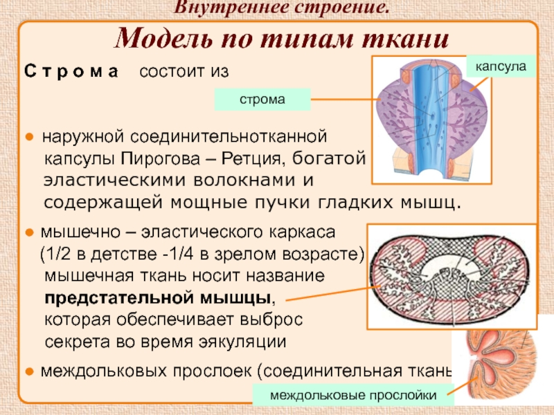 Слайд 89Внутреннее строение. Модель по типам ткани