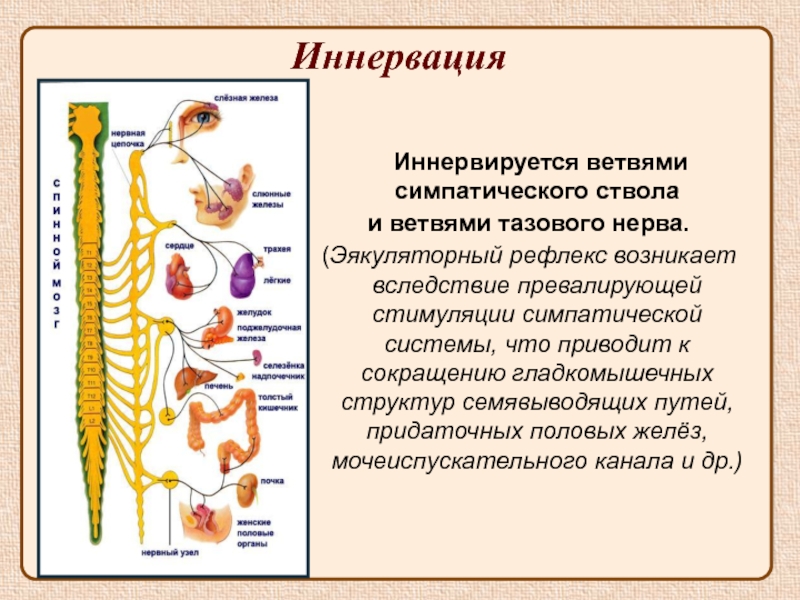 (Эякуляторный рефлекс возникает вследствие превалирующей стимуляции симпатической системы, что