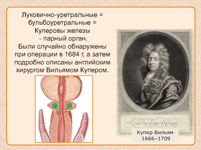 см., длина 3-4 см. Куперовы железы располагаются в толще мышцы промежности,