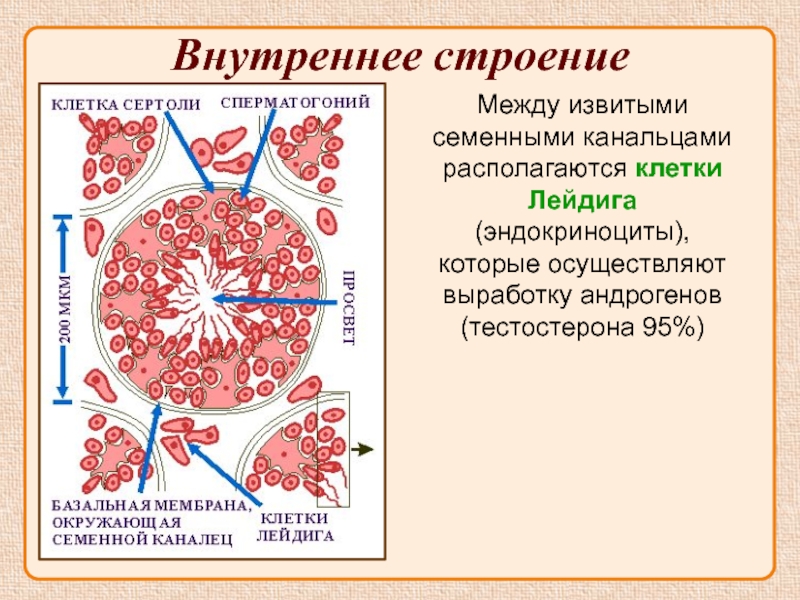 Слайд 92 Высота секреторных клеток определяется уровнем тестостерона в крови.