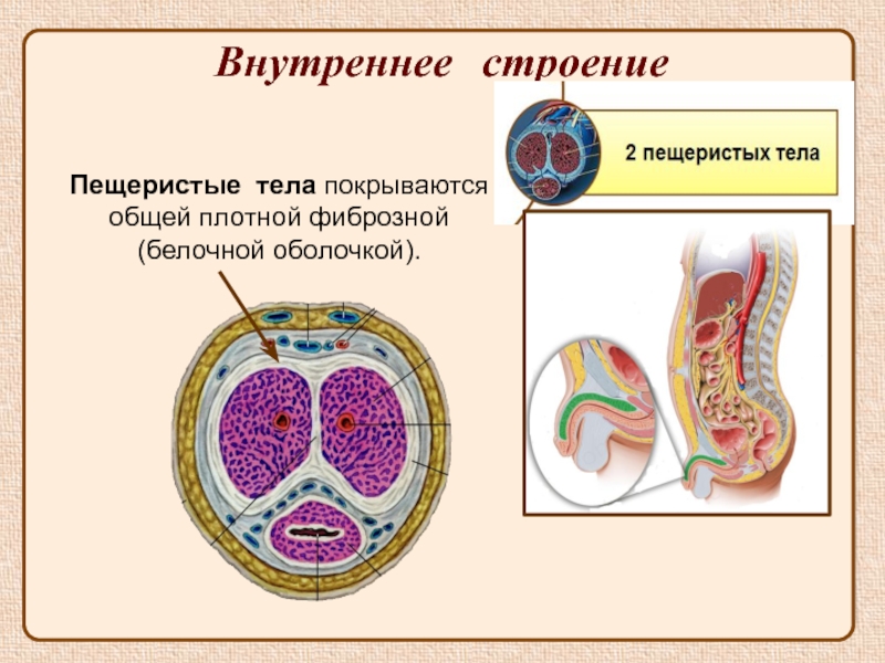 Пещеристые тела покрываются общей плотной фиброзной (белочной оболочкой).