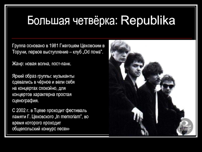 «большой четвёрки» - "Republiki”, "Lady Pank", «Maanam", "Perfectu". Это также