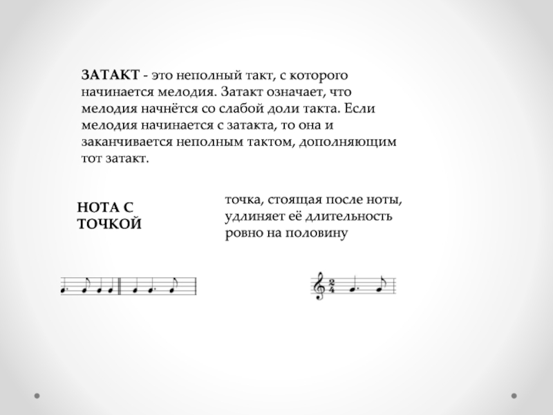 точка, стоящая после ноты, удлиняет её длительность ровно на половину