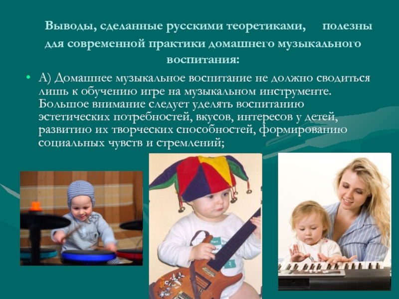 Слайд 16в) в домашнем музыкальном воспитании, как и воспитании вообще, очень