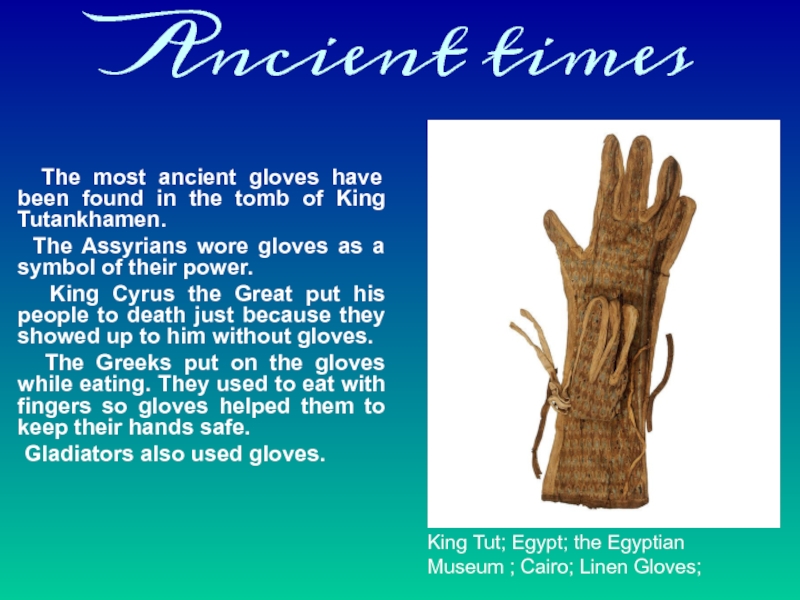 King Tut; Egypt; the Egyptian Museum ; Cairo; Linen Gloves;