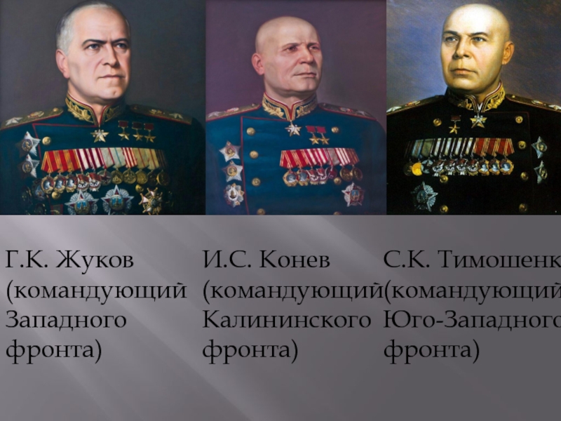 Г.К. Жуков (командующий Западного фронта) И.С. Конев (командующий Калининского фронта) С.К. Тимошенко (командующий Юго-Западного фронта)