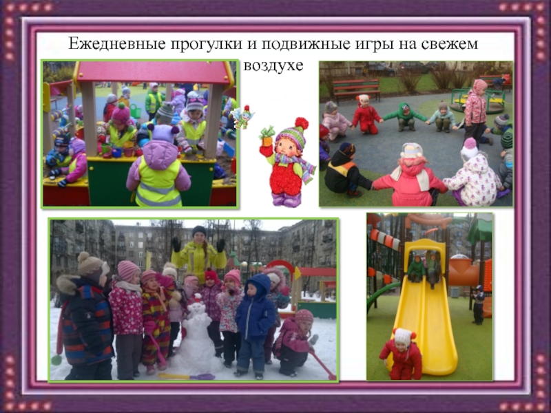 Слайд 13Ежедневные прогулки и подвижные игры на свежем воздухе