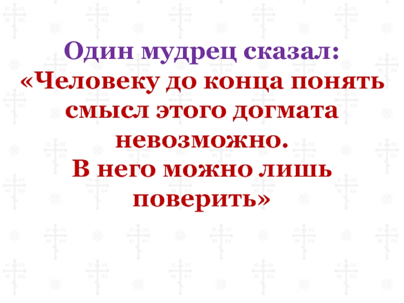 Слайд 25Один мудрец сказал: «Человеку до конца понять смысл этого догмата