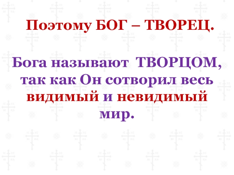 Слайд 42Поэтому БОГ – ТВОРЕЦ.