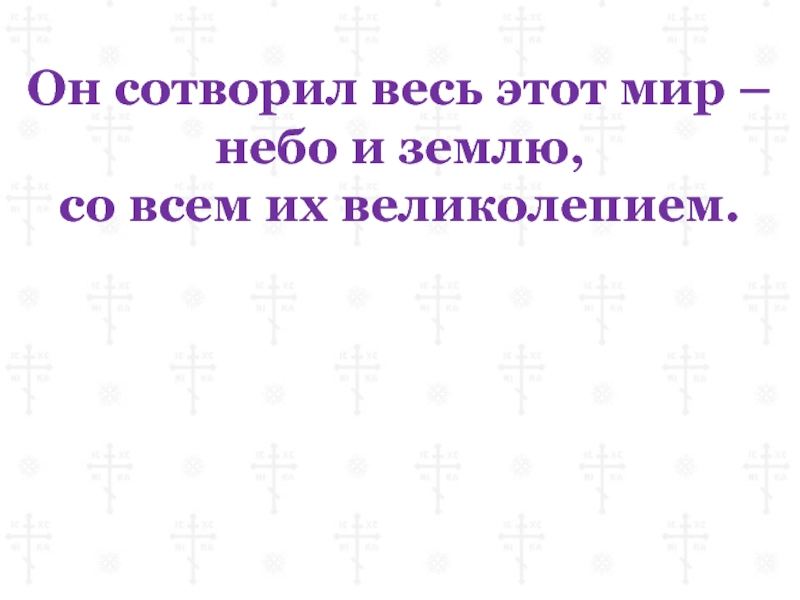 Слайд 27Он сотворил весь этот мир – небо и землю,