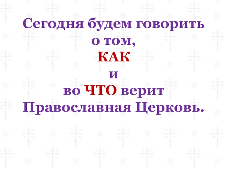 Сегодня будем говоритьо том,КАКиво ЧТО веритПравославная Церковь.