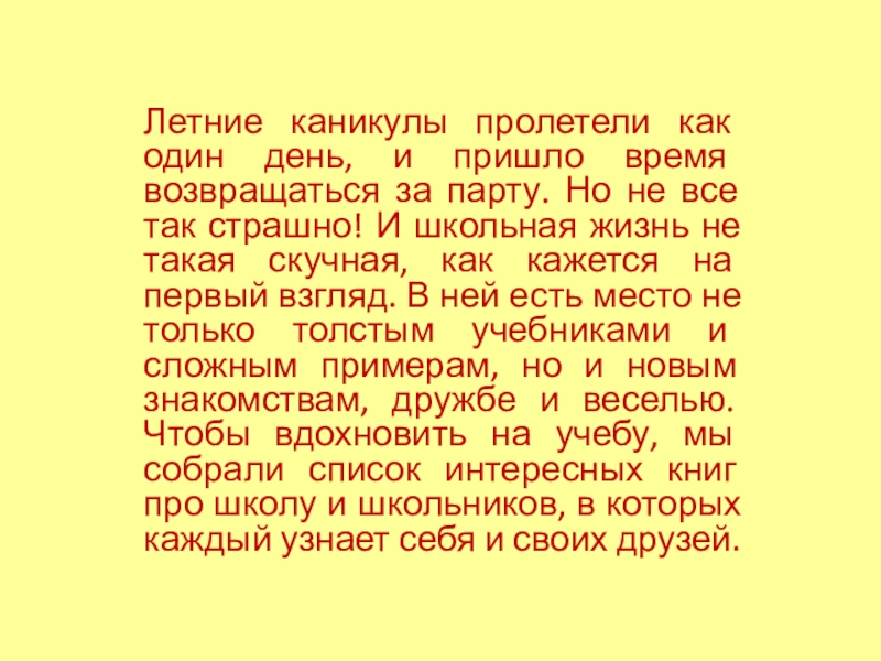 Слайд 3Летние каникулы пролетели как один день, и пришло время возвращаться