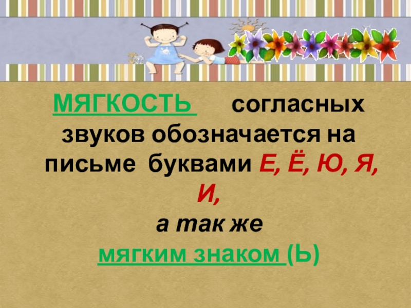 Слайд 18МЯГКОСТЬ согласных звуков обозначается на