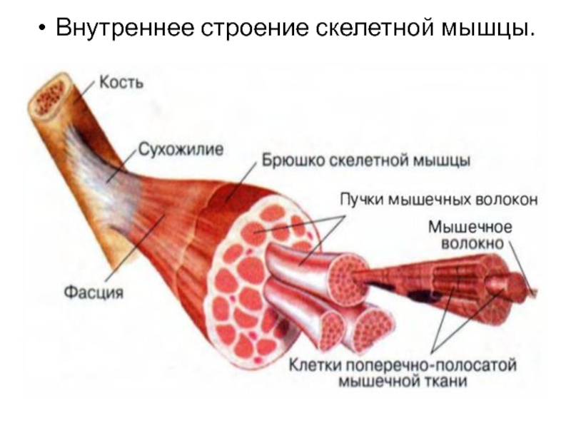 Слайд 6Внутреннее строение скелетной мышцы.