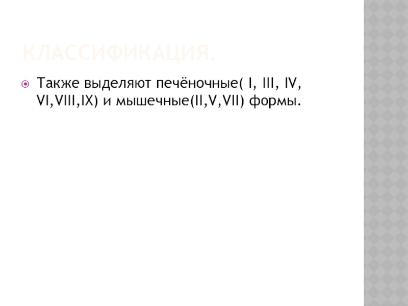 Слайд 11Болезнь ПОМПЕ. Классификация.