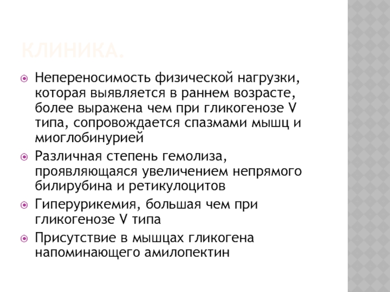 Слайд 8Мышечные гликогенозы.