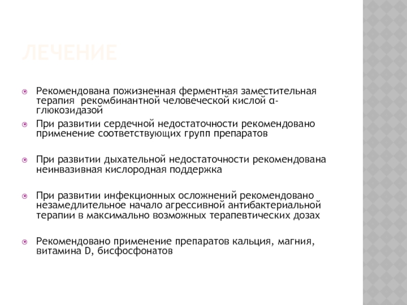 Рекомендована пожизненная ферментная заместительная терапия рекомбинантной человеческой кислой α-глюкозидазой