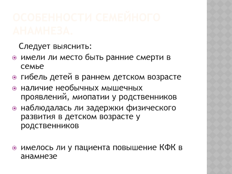 Слайд 14Особенности семейного анамнеза.