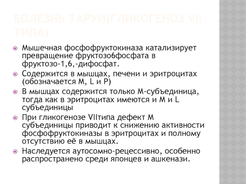 Слайд 27Болезнь Таруи(гликогеноз VII типа)