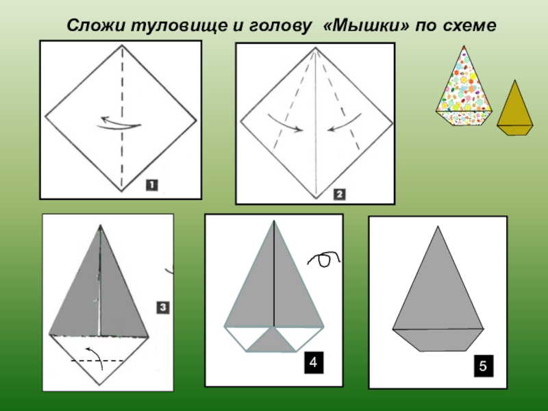 Слайд 4Сложи туловище и голову «Мышки» по схеме