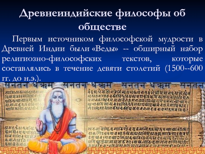были «Веды» -- обширный набор религиозно-философских текстов, которые составлялись в