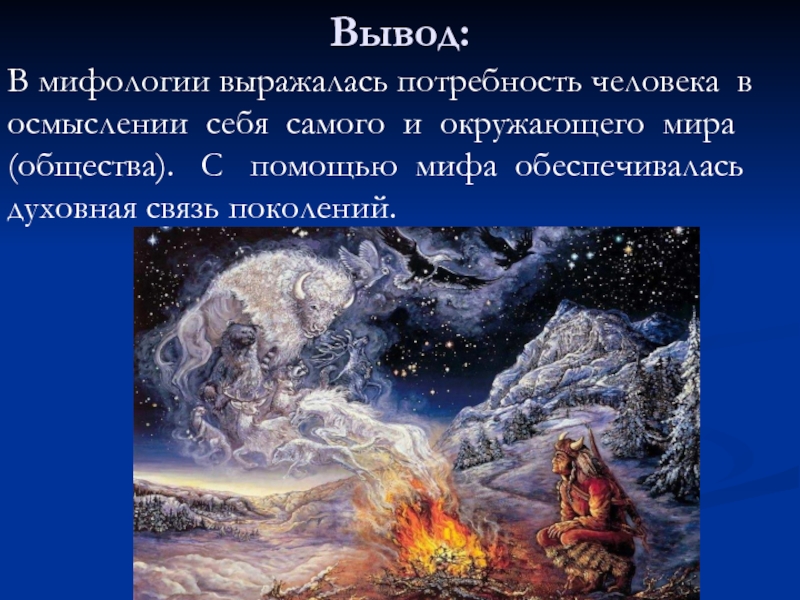 окружающего мира (общества). С помощью мифа обеспечивалась духовная