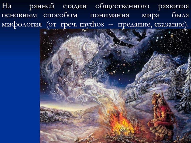 Слайд 3На ранней стадии общественного развития основным способом понимания мира была