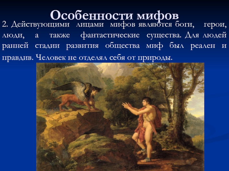 стадии развития общества миф был реален и правдив. Человек не отделял себя от природы.