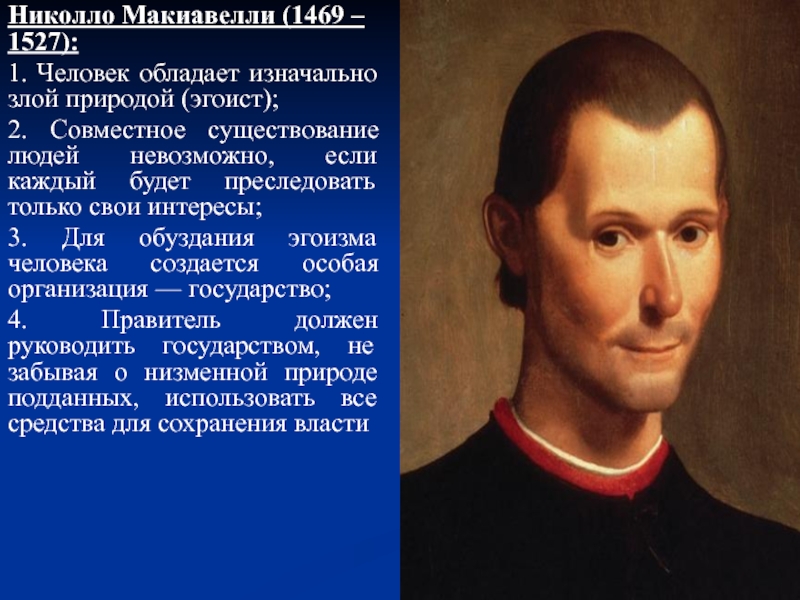 Слайд 22Николло Макиавелли (1469 – 1527):