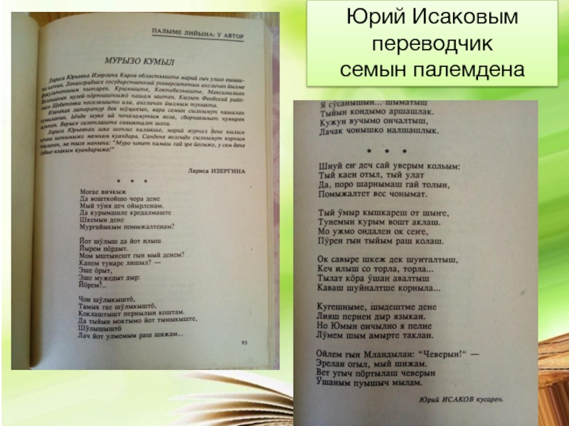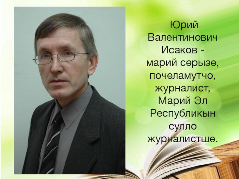 Юрий Валентинович Исаков -марий серызе, почеламутчо, журналист, Марий Эл Республикын сулло журналистше.