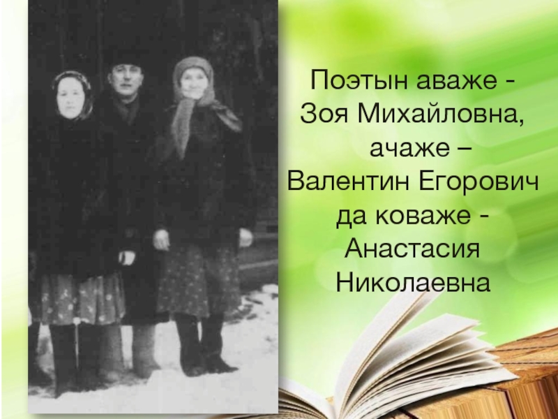 Поэтын аваже - Зоя Михайловна, ачаже – Валентин Егорович да коваже - Анастасия Николаевна