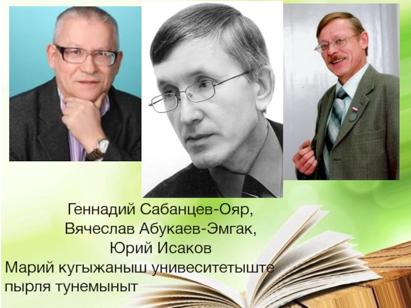 Геннадий Сабанцев-Ояр, Вячеслав Абукаев-Эмгак, Юрий ИсаковМарий кугыжаныш унивеситетыште пырля тунемыныт